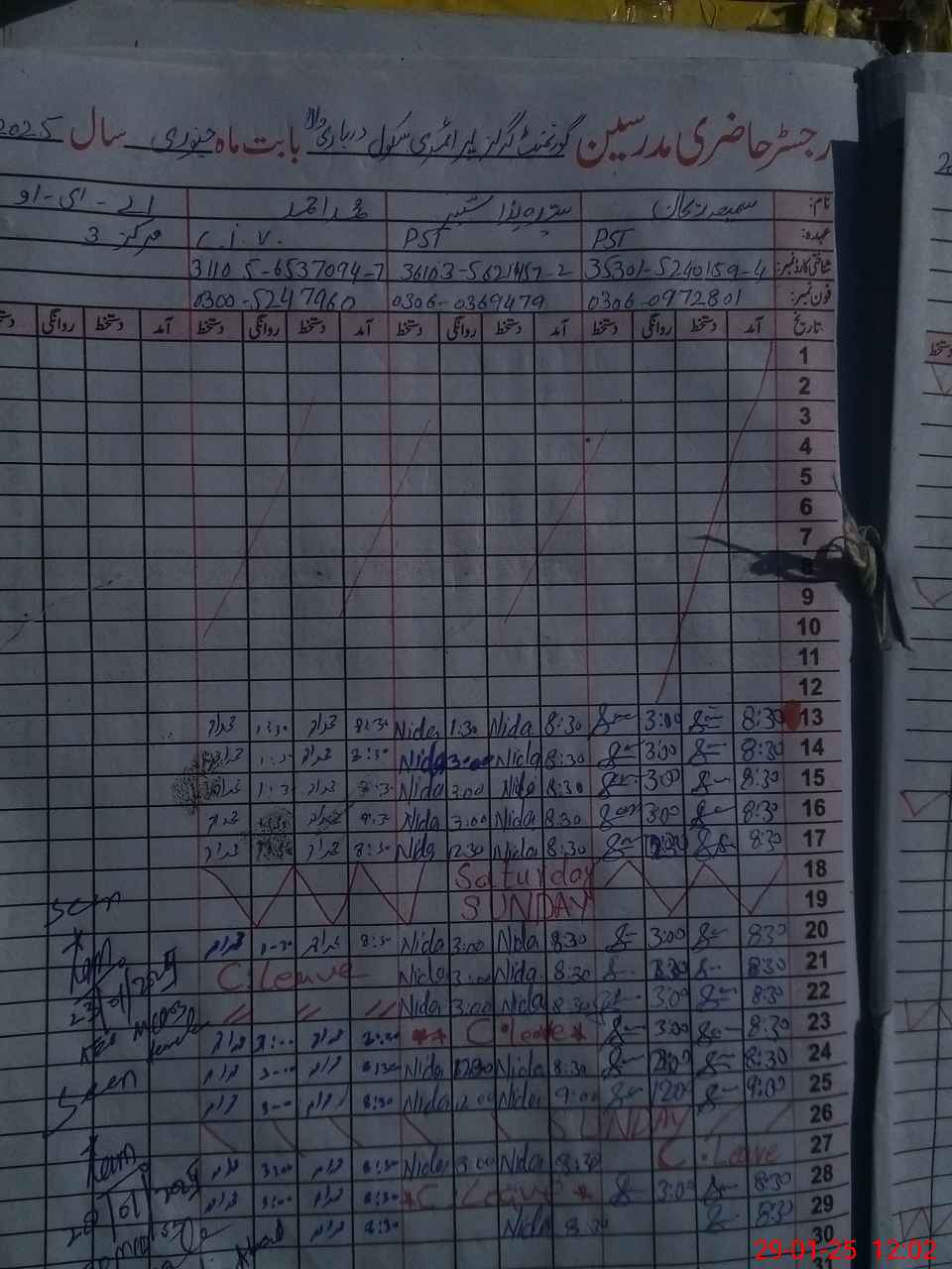 | Name: SA**** RE**** Designation: (School Headmaster's/Headmistress's) PST Phone/Cell Number: 03**** |