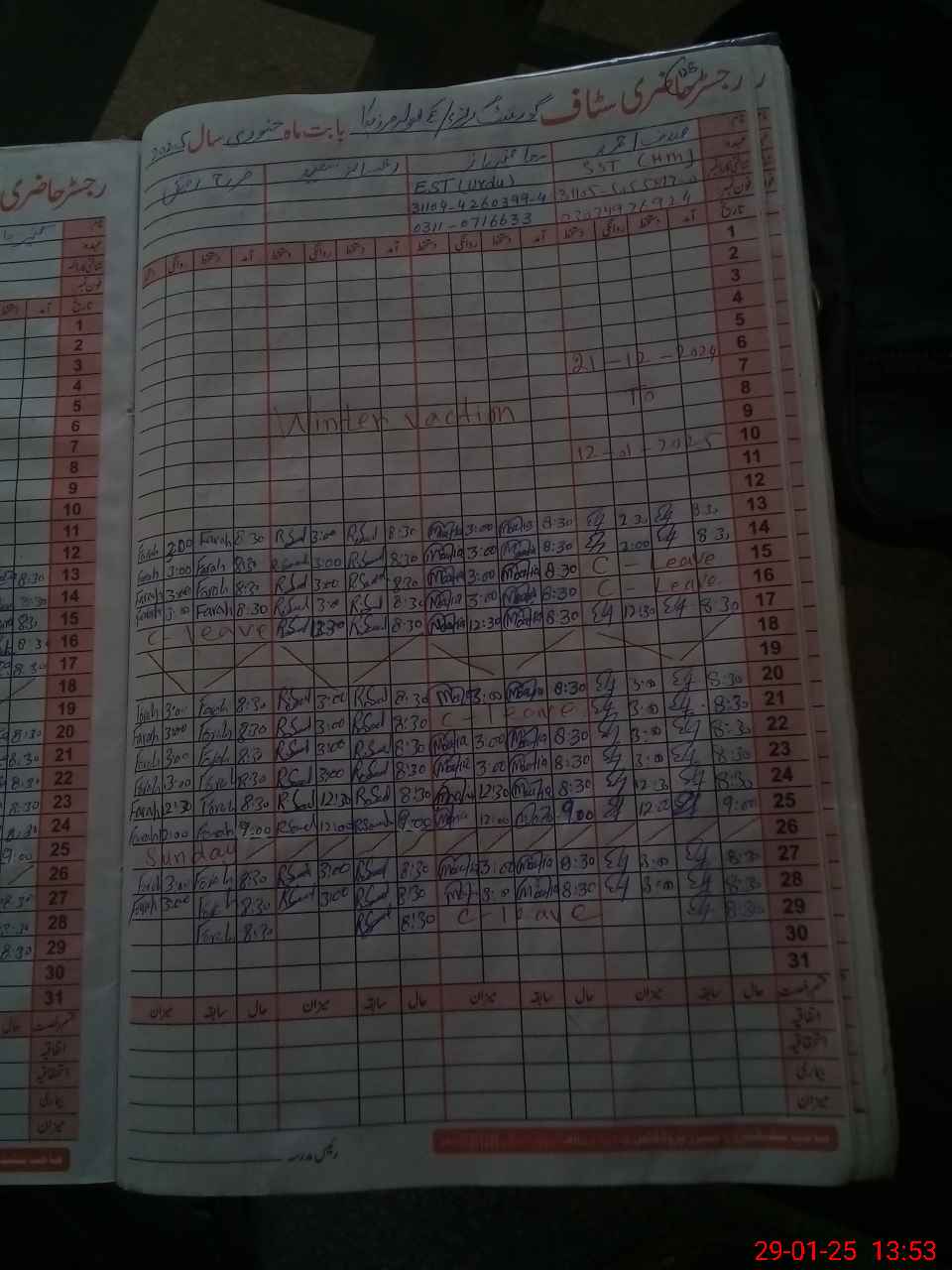 | CNIC | Full Name | Designation | R/C | Absence During Last Calender Month |