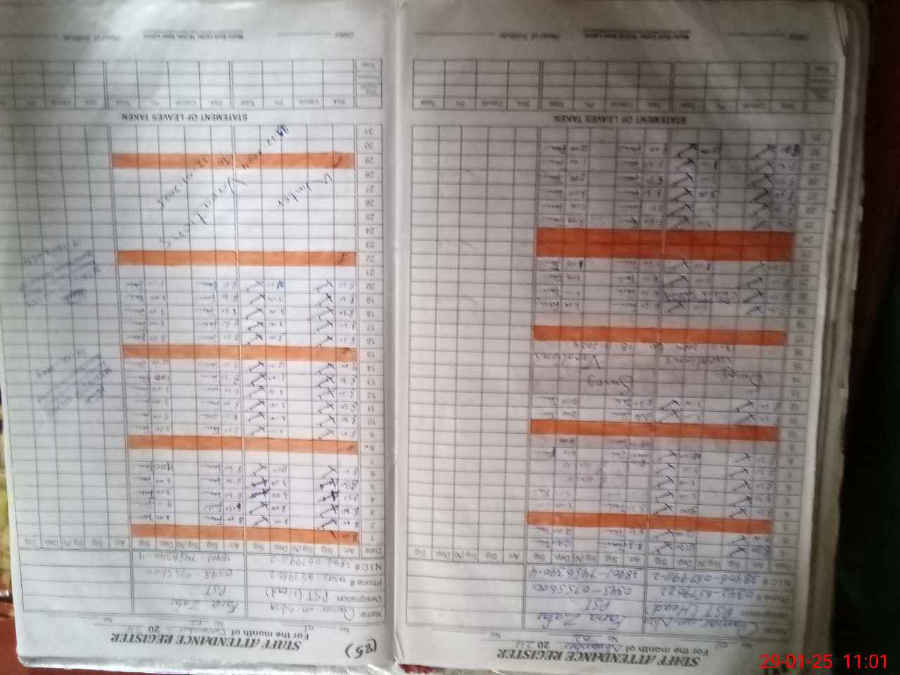| CNIC | Full Name | Designation | R/C | Absence During Last Calender Month |