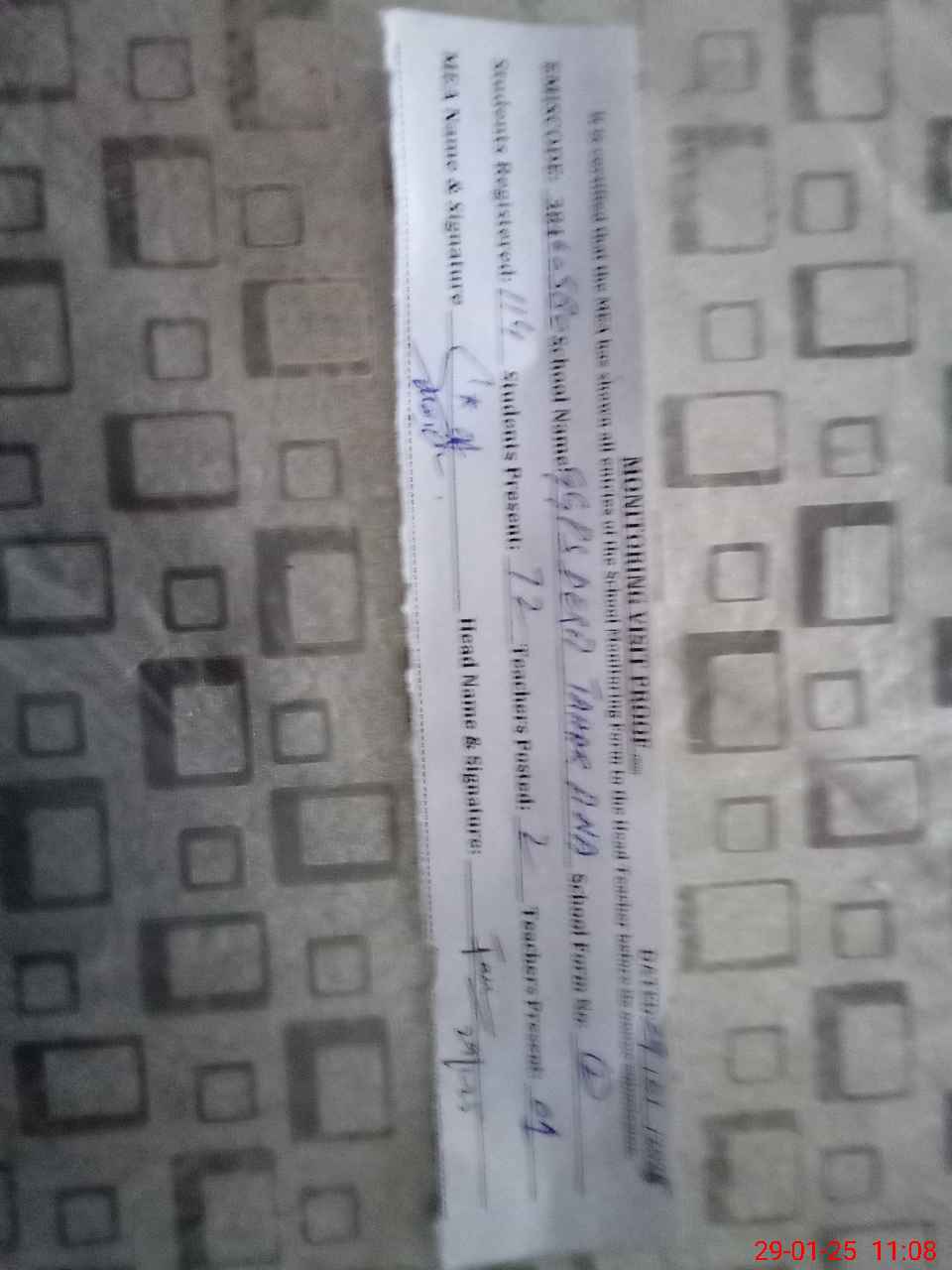 | Attendance Register | Head Teacher | MEA with School | Visit Proof |