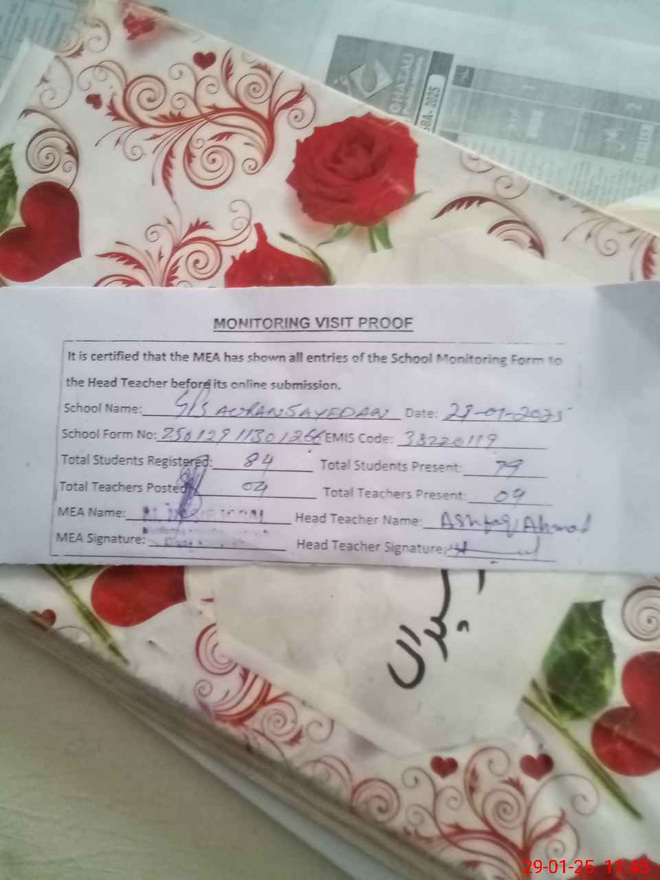 | EMIS Code: 38220119 | Name of School: GPS AURA SYEDAN | |||