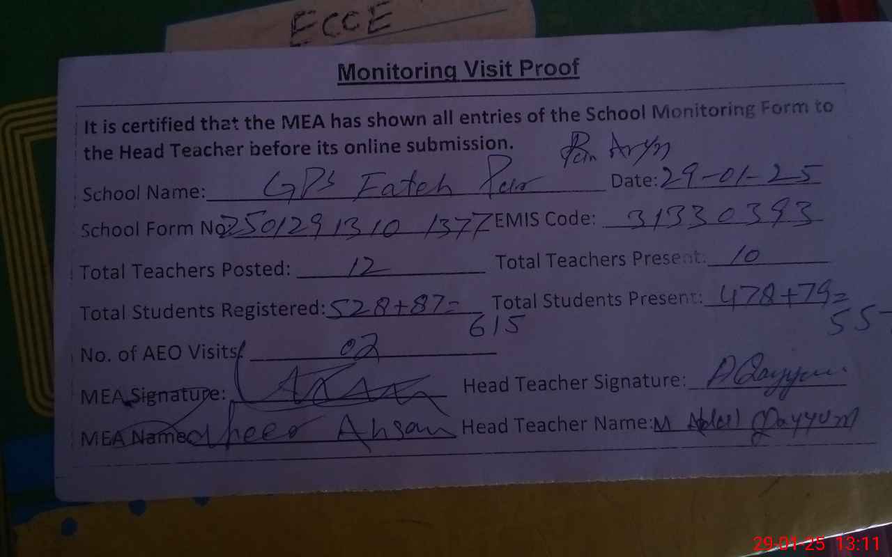 | EMIS Code: 31330393 | Name of School: GPS FATEH PUR ARAIN | |||