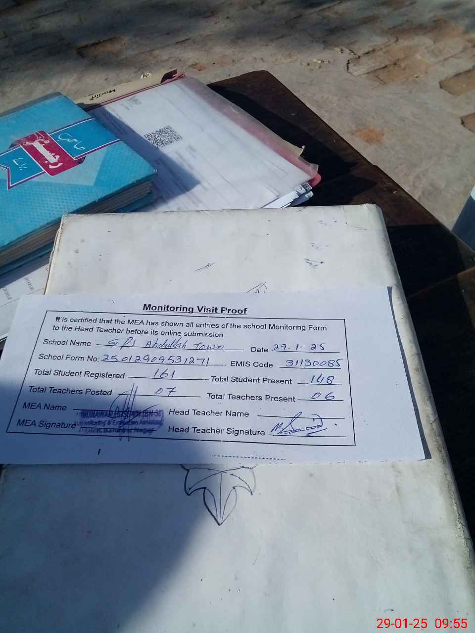 | EMIS Code: 31130085 | Name of School: GPS ADBULLAH TOWN FOR ABBAS | |||