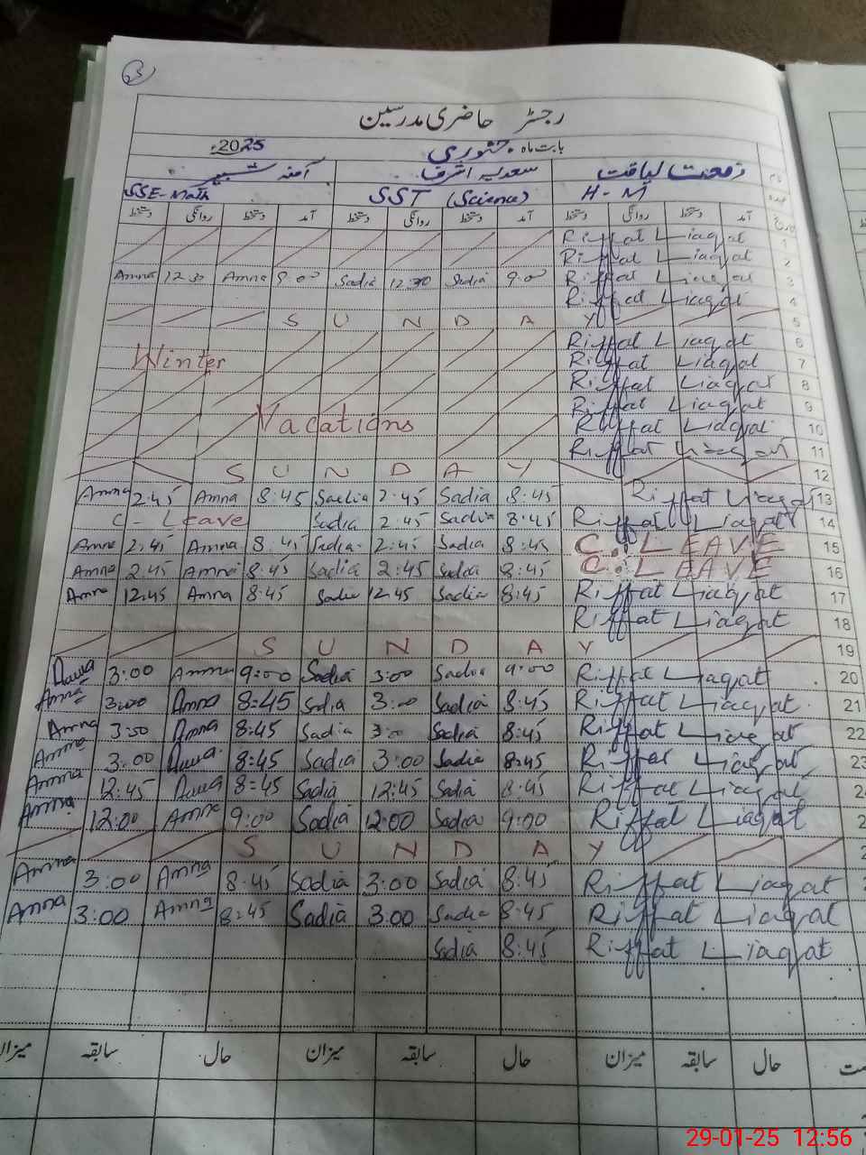 | CNIC | Full Name | Designation | R/C | Absence During Last Calender Month |