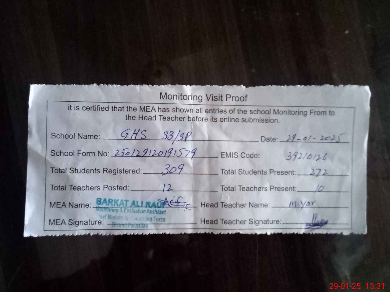 | EMIS Code: 39210126 | Name of School: GHS 33 SP | |||