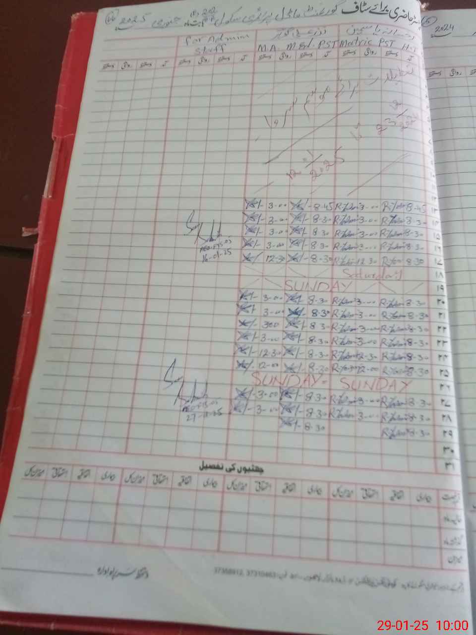 | CNIC | Full Name | Designation | R/C | Absence During Last Calender Month |