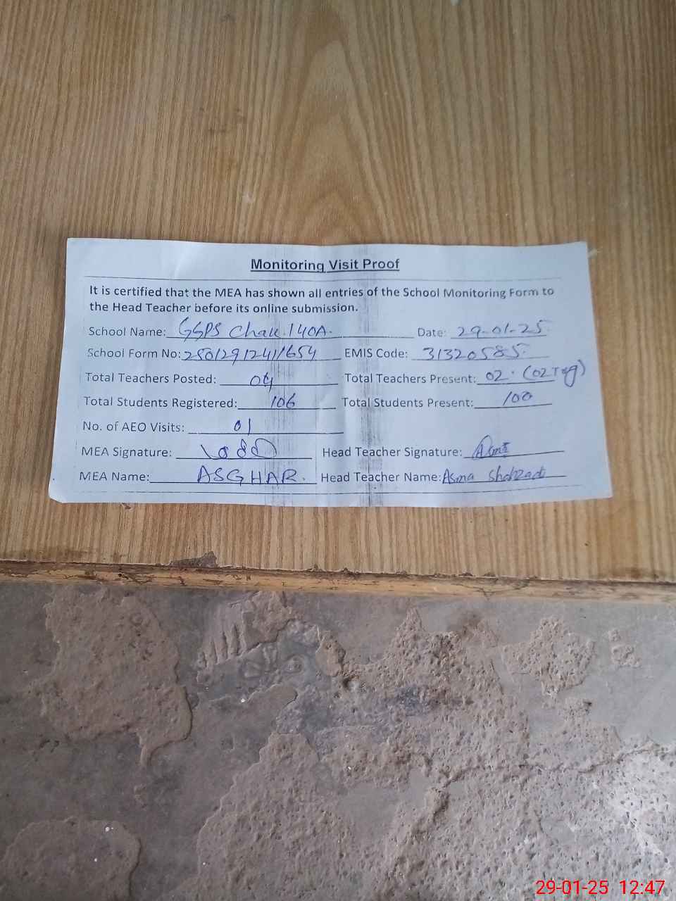 | EMIS Code: 31320585 | Name of School: GGPS CHAK NO.140/A | |||