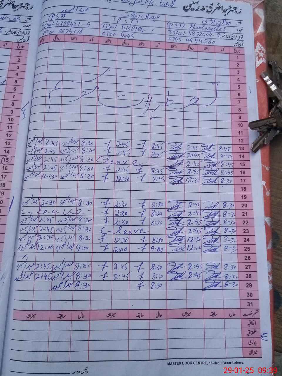 | CNIC | Full Name | Designation | R/C | Absence During Last Calender Month |