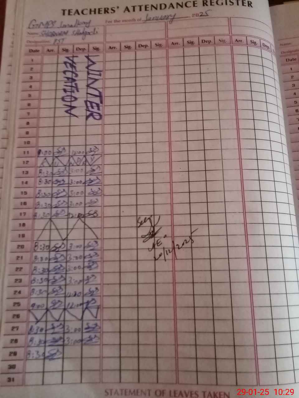 | Name: SH**** SH**** Designation: (School Headmaster's/Headmistress's) PST Phone/Cell Number: 03**** |