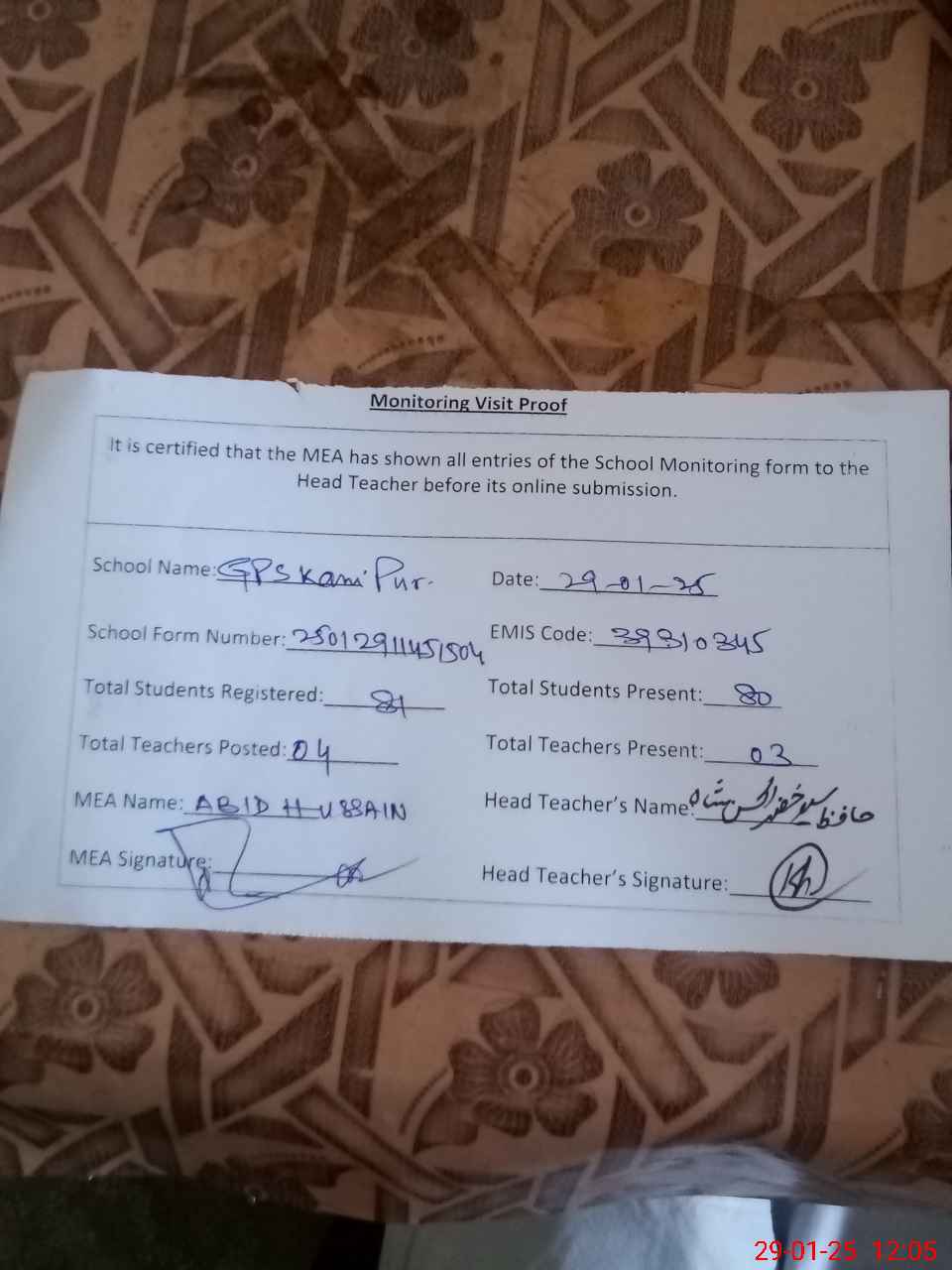 | EMIS Code: 39310345 | Name of School: GPS KANI PUR | |||