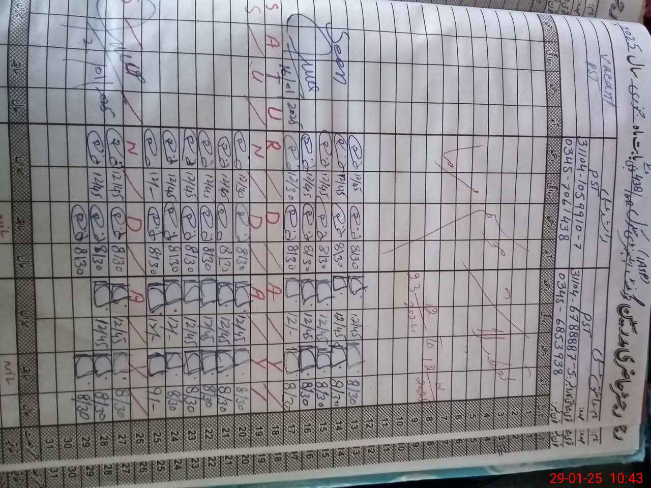 | CNIC | Full Name | Designation | R/C | Absence During Last Calender Month |