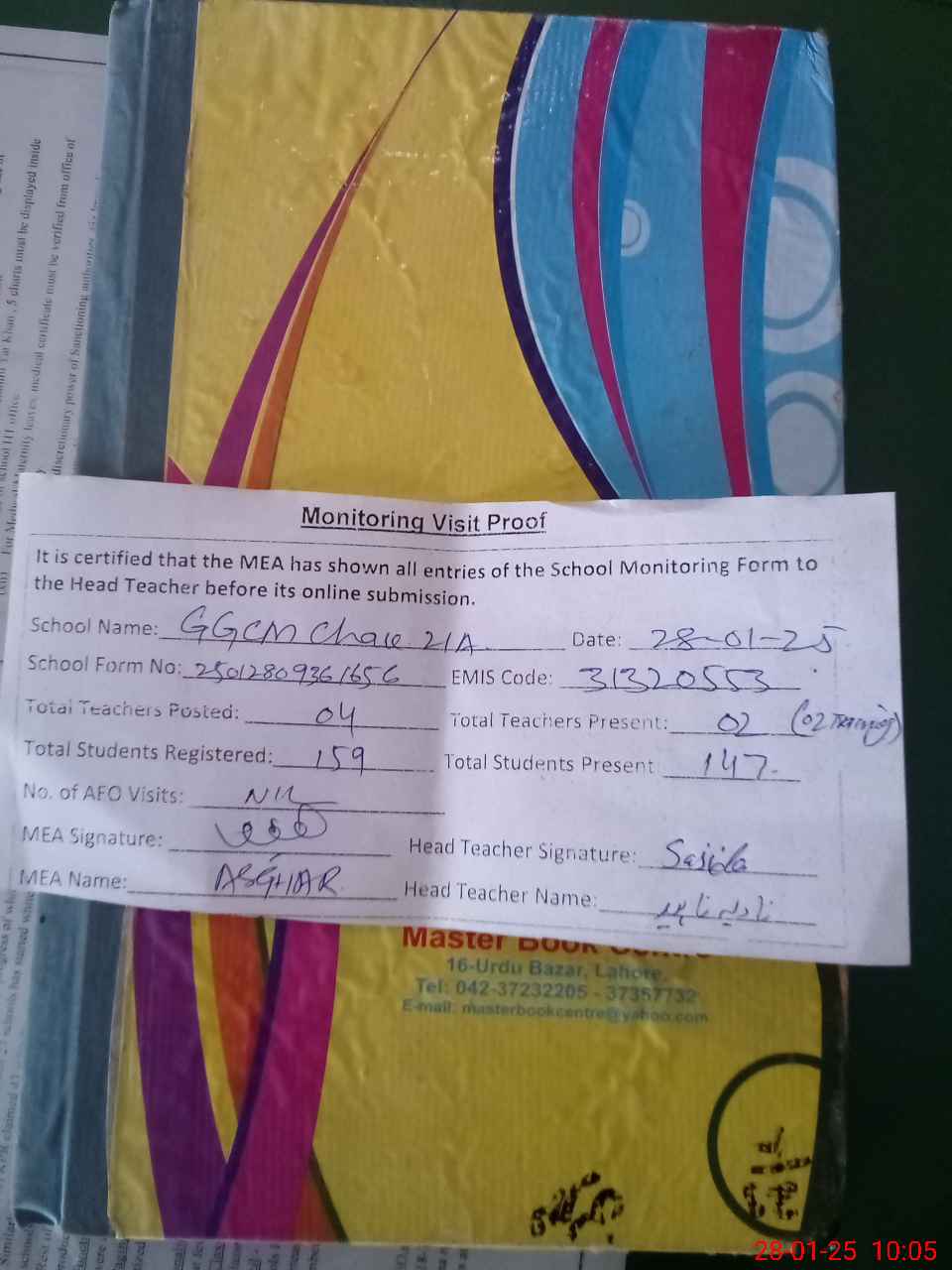 | EMIS Code: 31320553 | Name of School: GGCMS CHAK NO. 21/A | |||