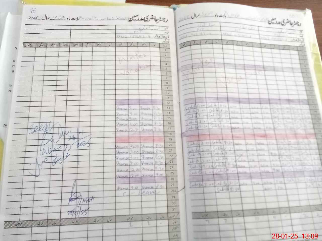 | CNIC | Full Name | Designation | R/C | Absence During Last Calender Month |