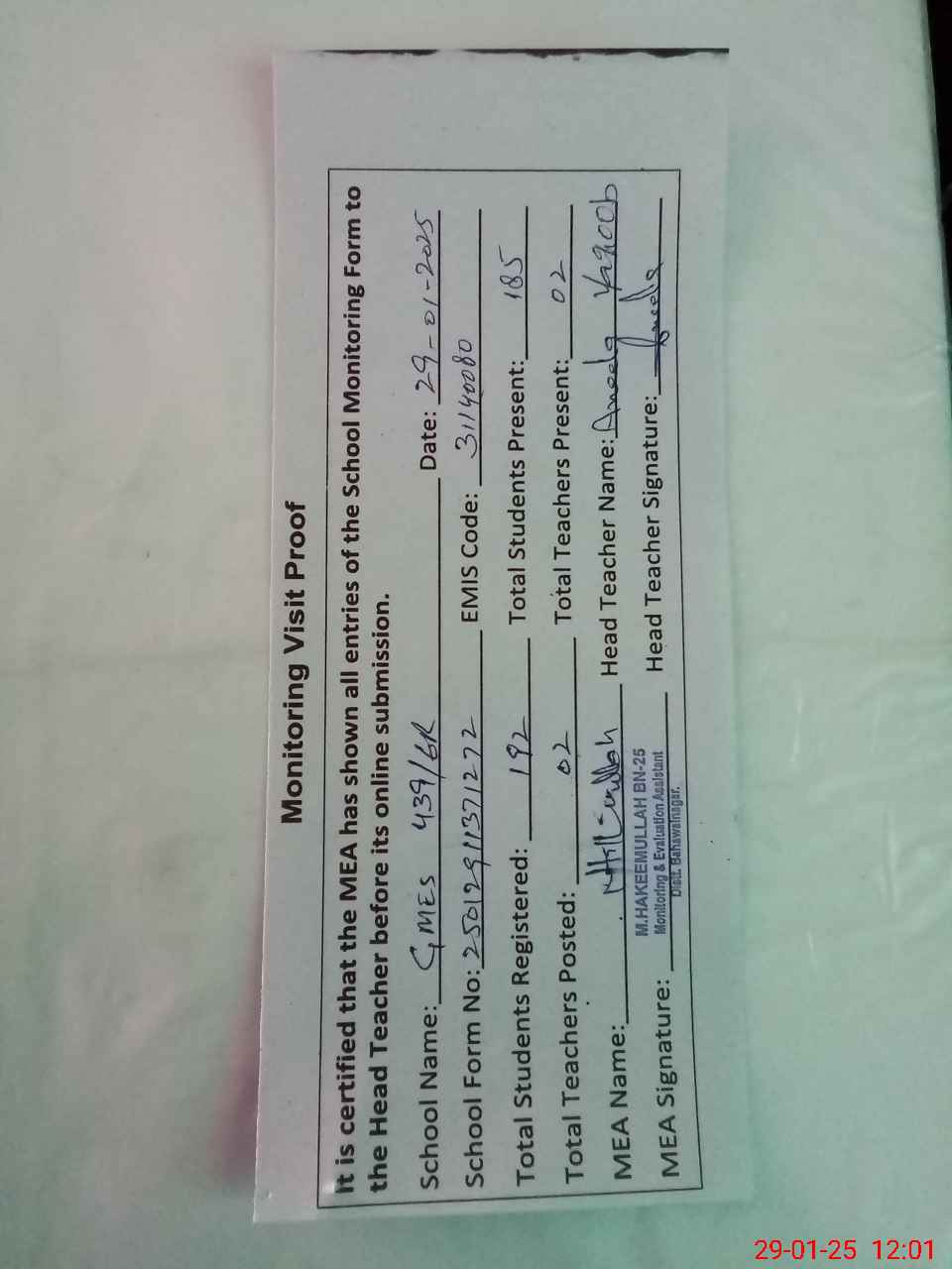 | EMIS Code: 31140080 | Name of School: GMES CHAK NO. 439/6-R | |||