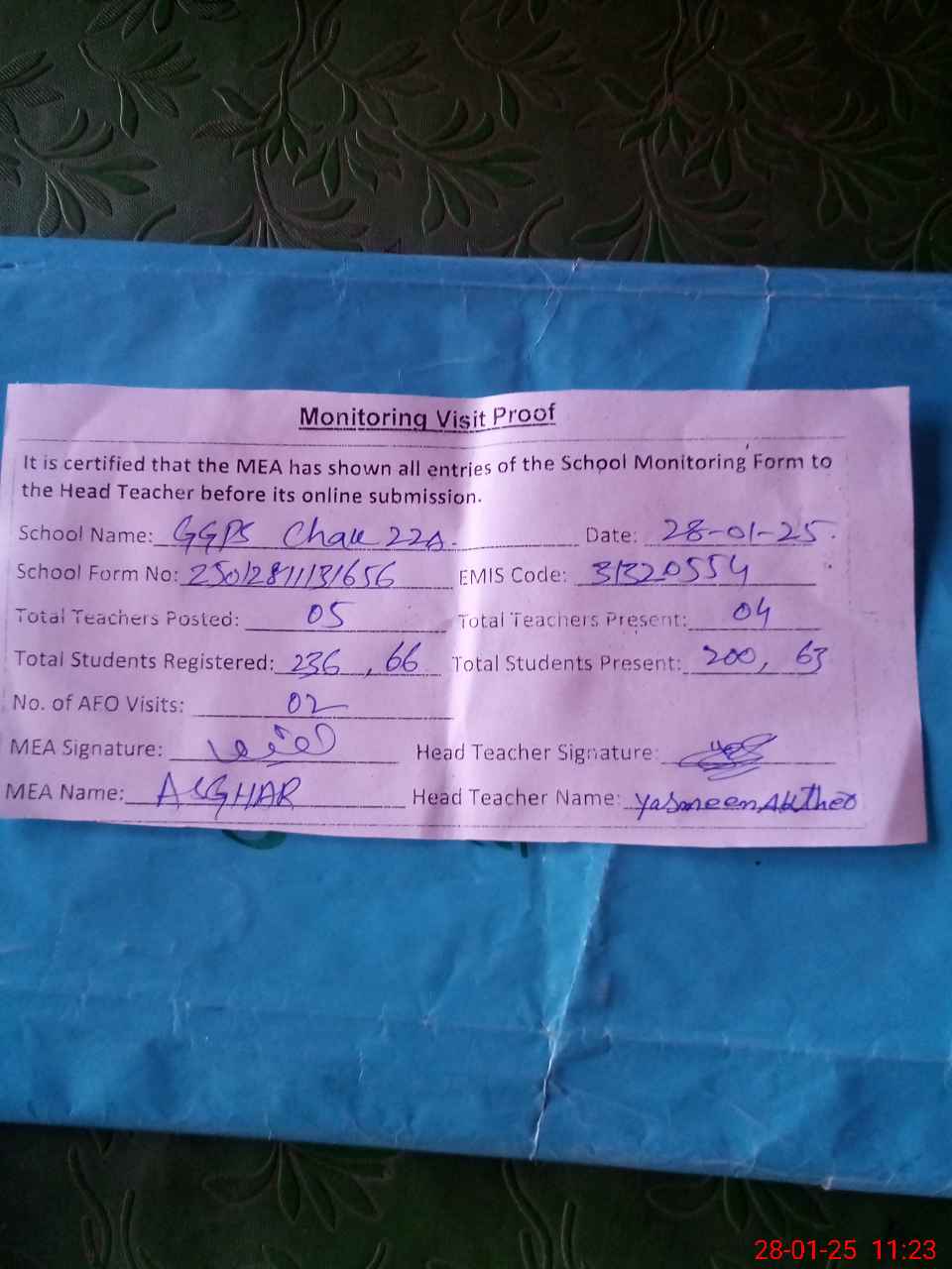 | EMIS Code: 31320554 | Name of School: GGPS CHAK NO 22/A | |||