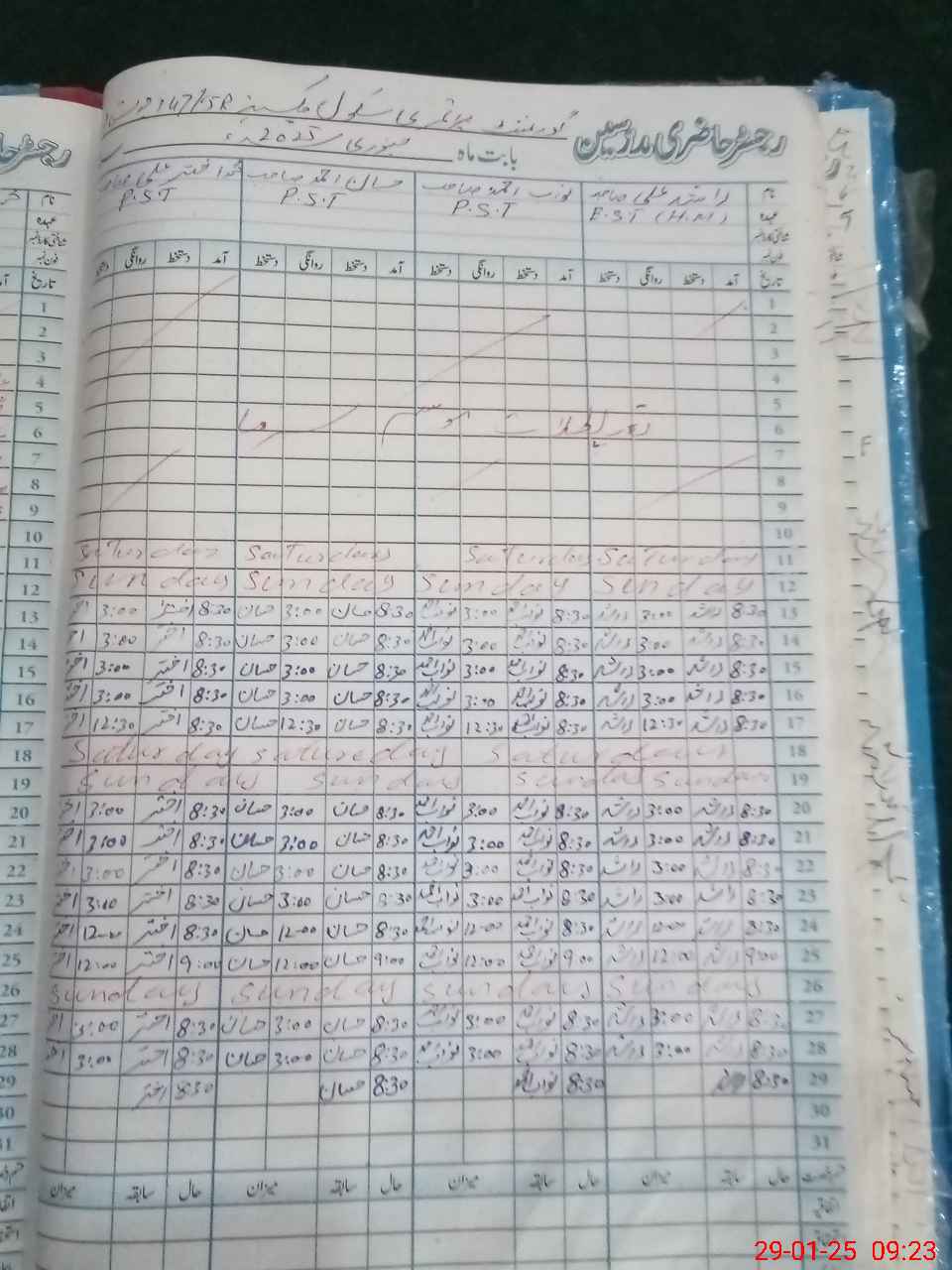 | CNIC | Full Name | Designation | R/C | Absence During Last Calender Month |