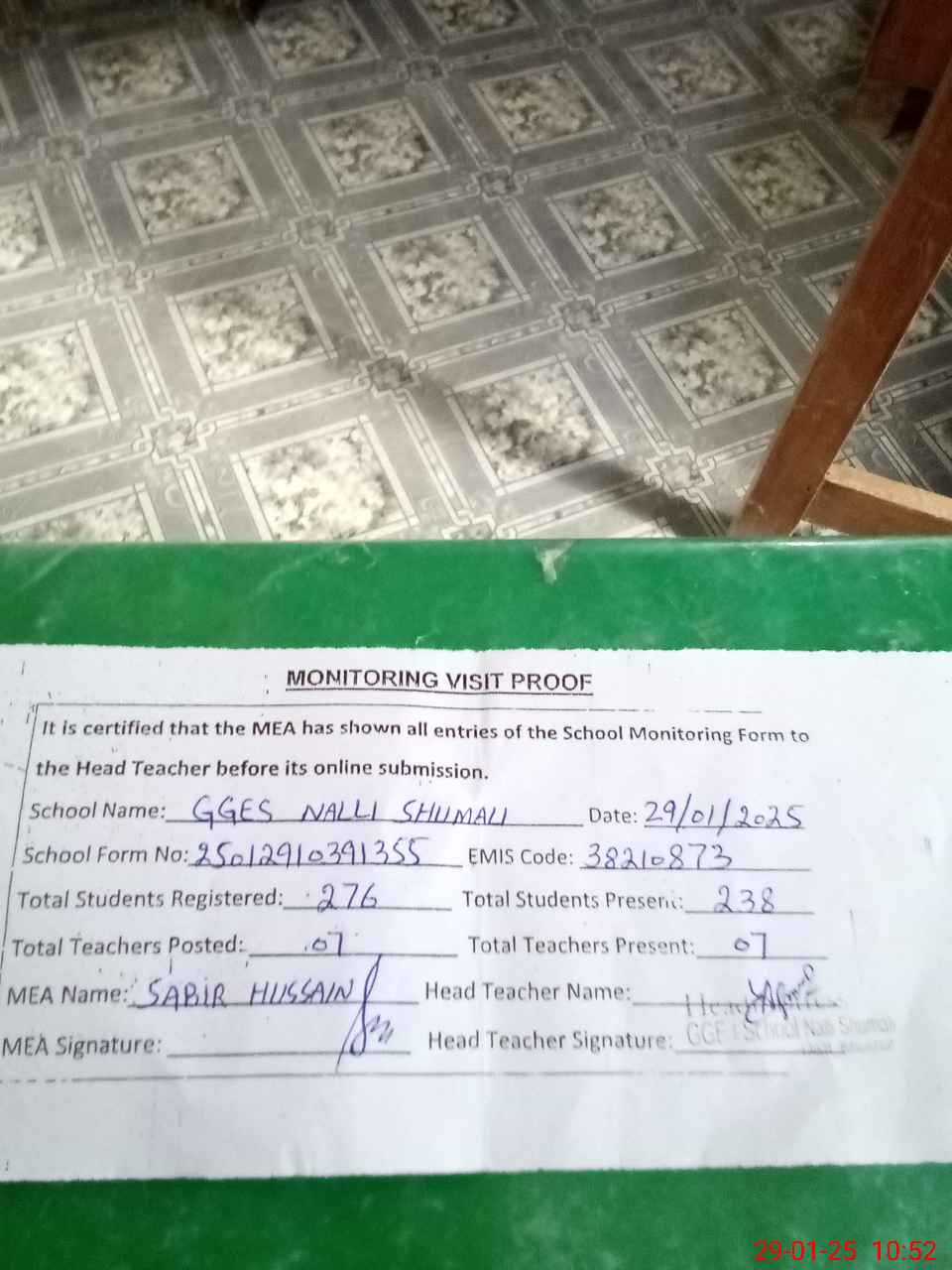 | EMIS Code: 38210873 | Name of School: GGHS NALLI SHUMALI KHUSHAB | |||