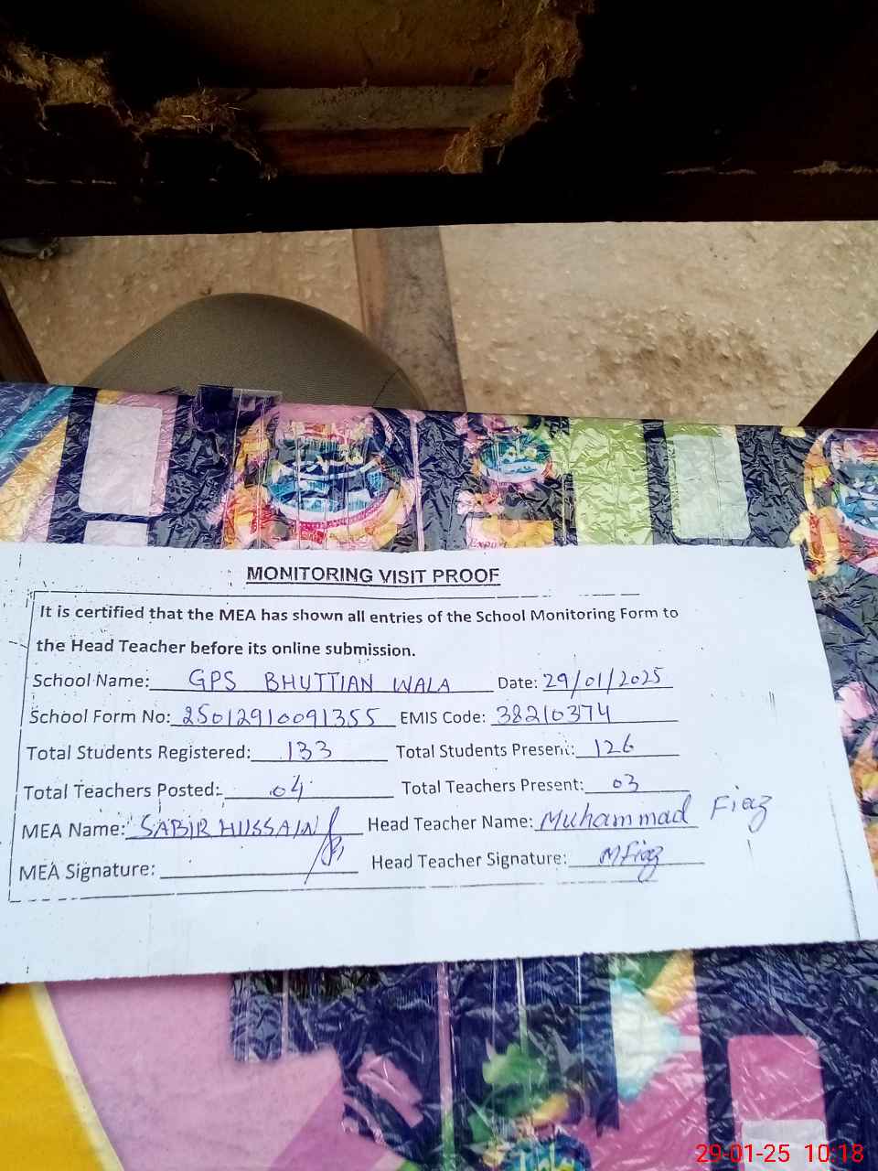 | EMIS Code: 38210374 | Name of School: GPS BHUTTIAN WALA | |||