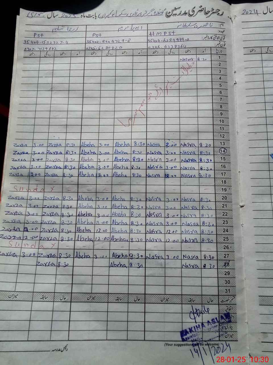 | Name: Na**** Su**** Designation: (School Headmaster's/Headmistress's) PST Phone/Cell Number: 03**** |