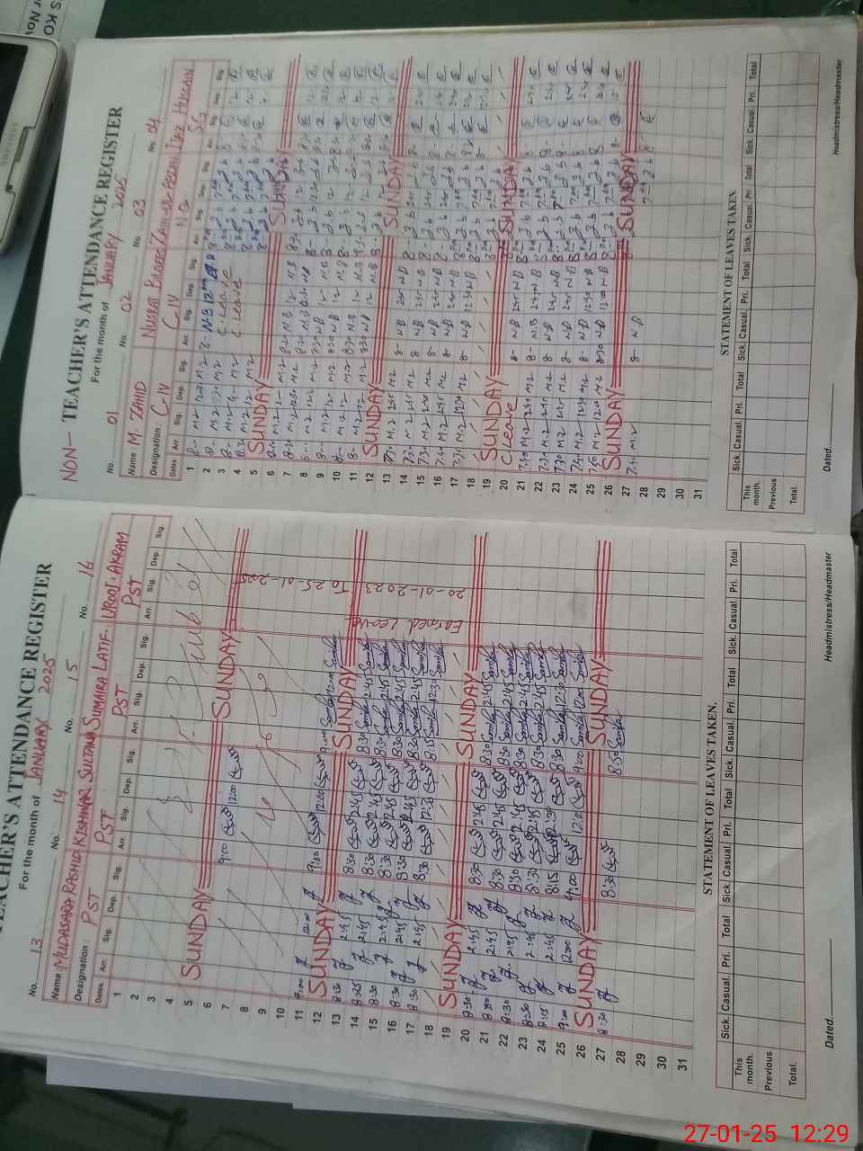| CNIC | Full Name | Designation | R/C | Absence During Last Calender Month |