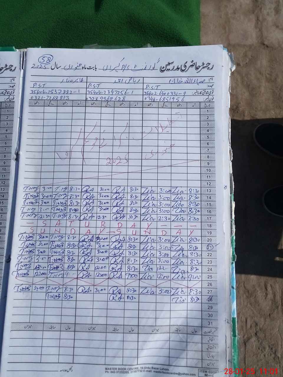 | Name: ZI**** KH**** Designation: (School Headmaster's/Headmistress's) PST Phone/Cell Number: 03**** |
