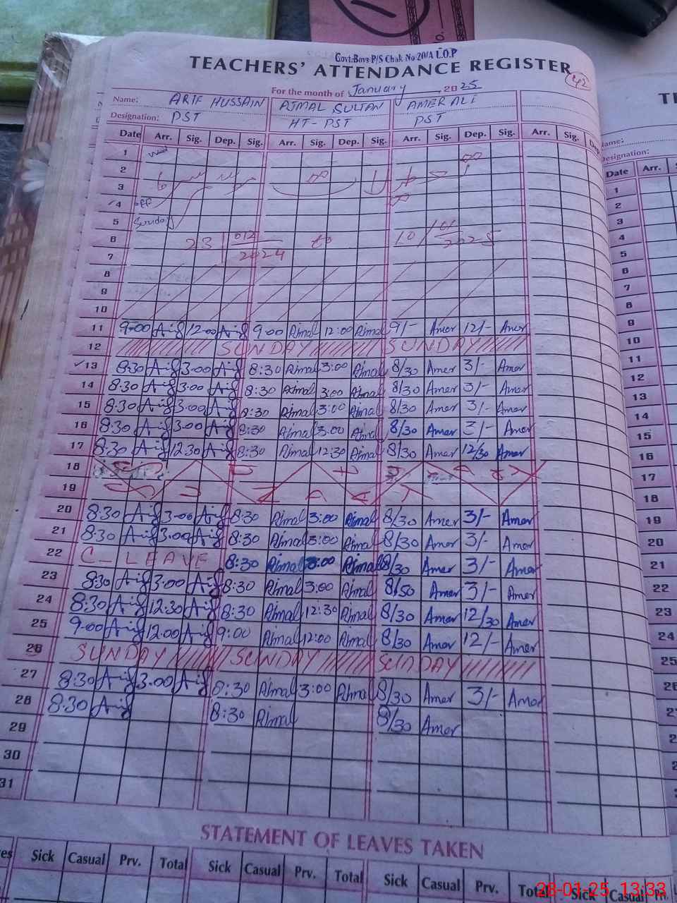 | Name: AM**** AL**** Designation: (School Headmaster's/Headmistress's) PST Phone/Cell Number: 03**** |