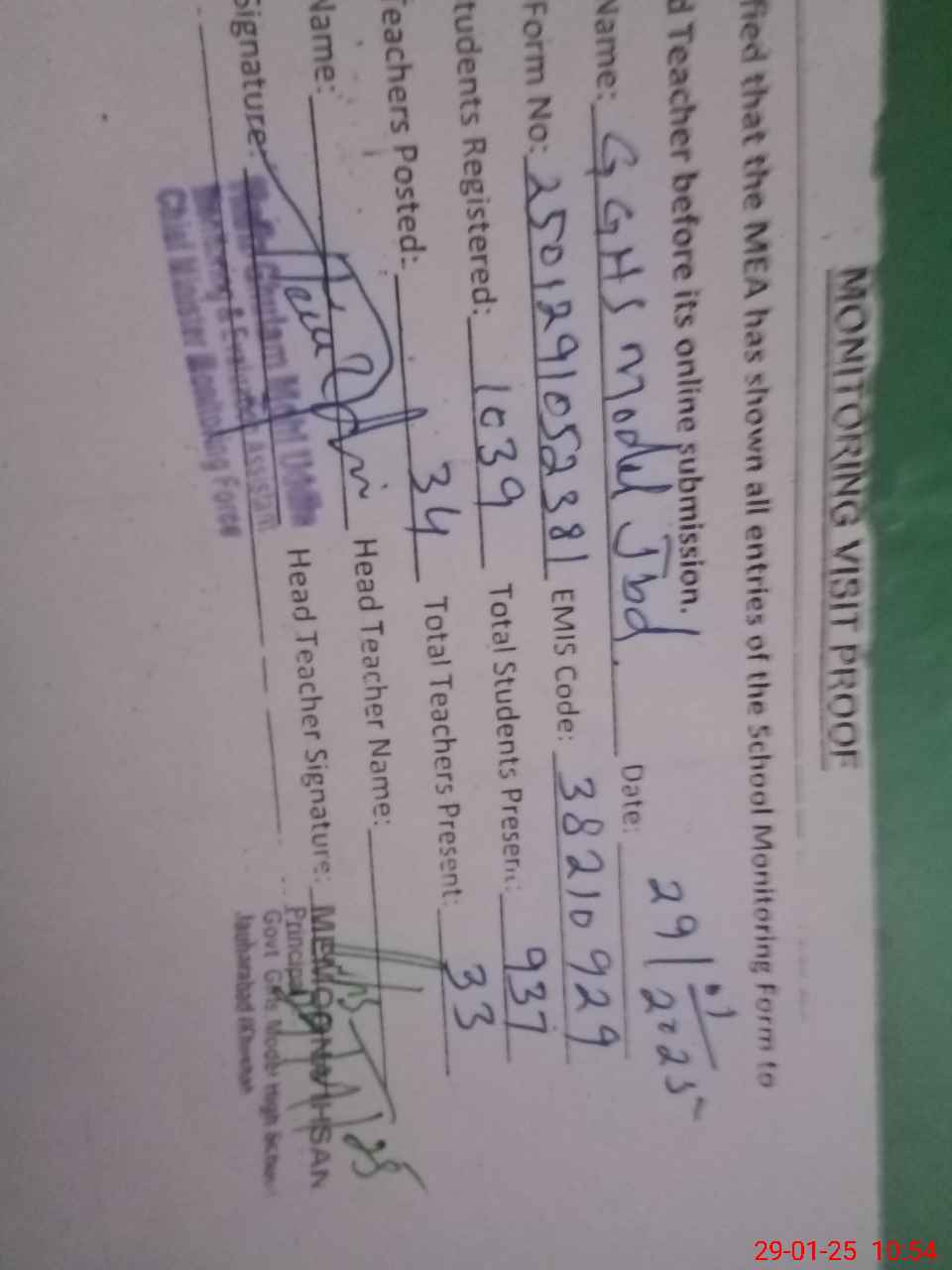 | EMIS Code: 38210929 | Name of School: GGHS MODEL JOUHAR ABAD | |||