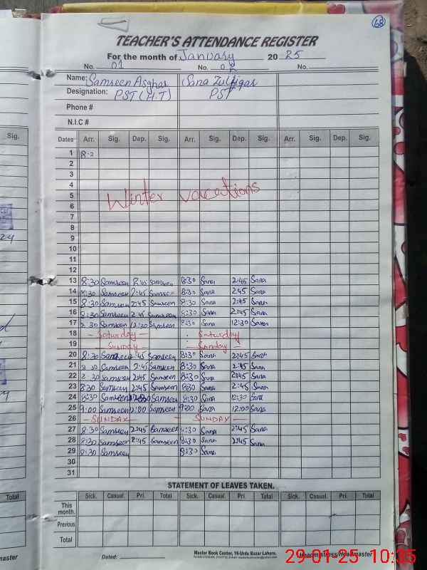 | Name: SA**** AS**** Designation: (School Headmaster's/Headmistress's) PST Phone/Cell Number: 03**** |