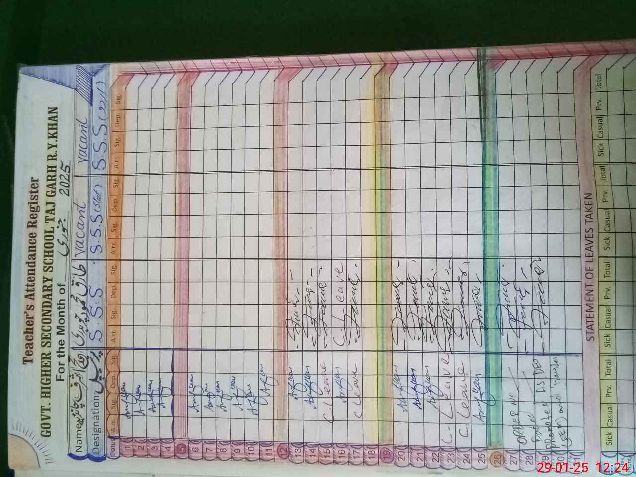 | CNIC | Full Name | Designation | R/C | Absence During Last Calender Month |