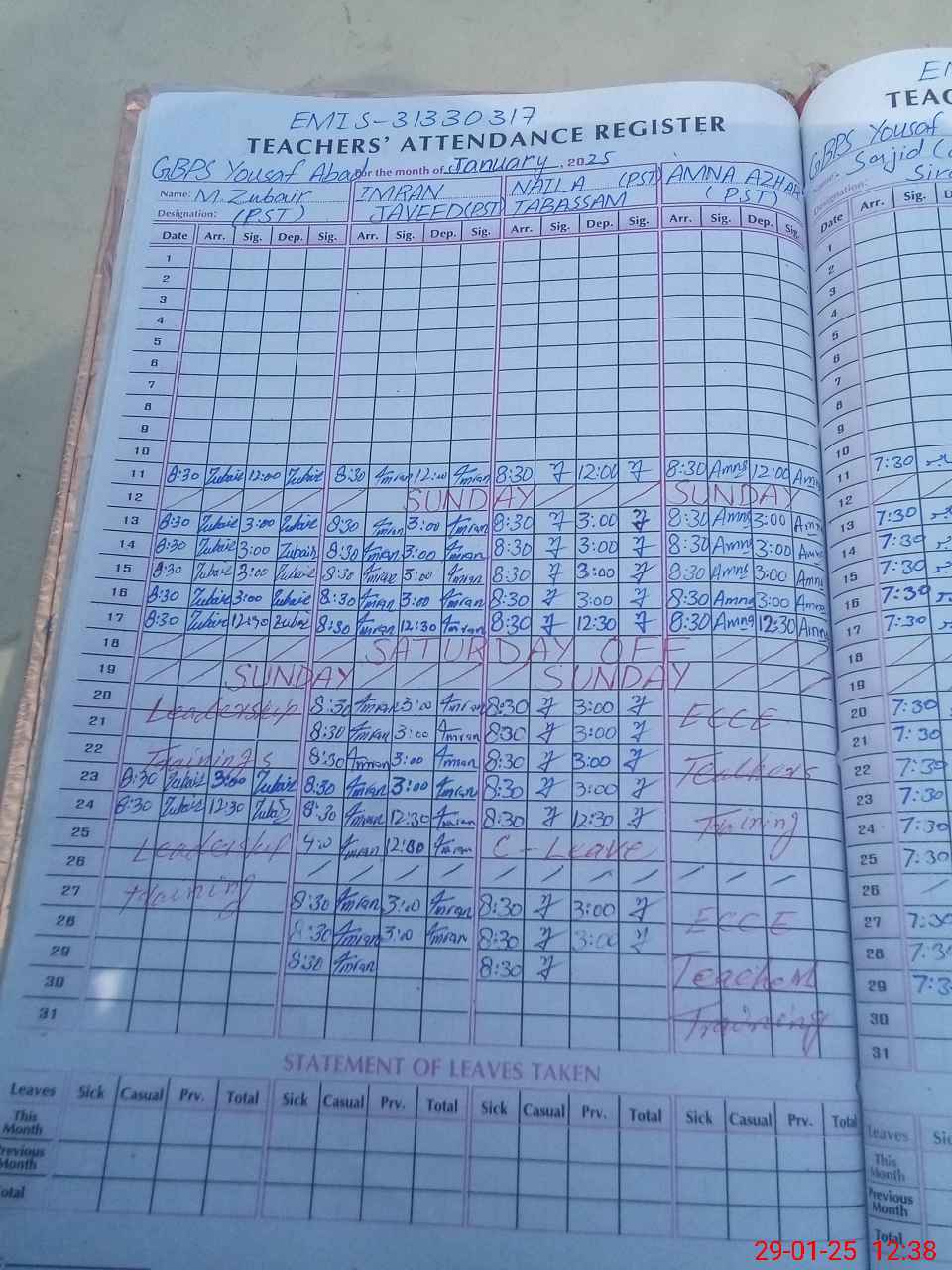| 31**** | Mu**** Zu**** | PST | Regular | 0 | 0 | 0 | 0 | 0 | 0 | 0 | 0 | 0 | On Training |
