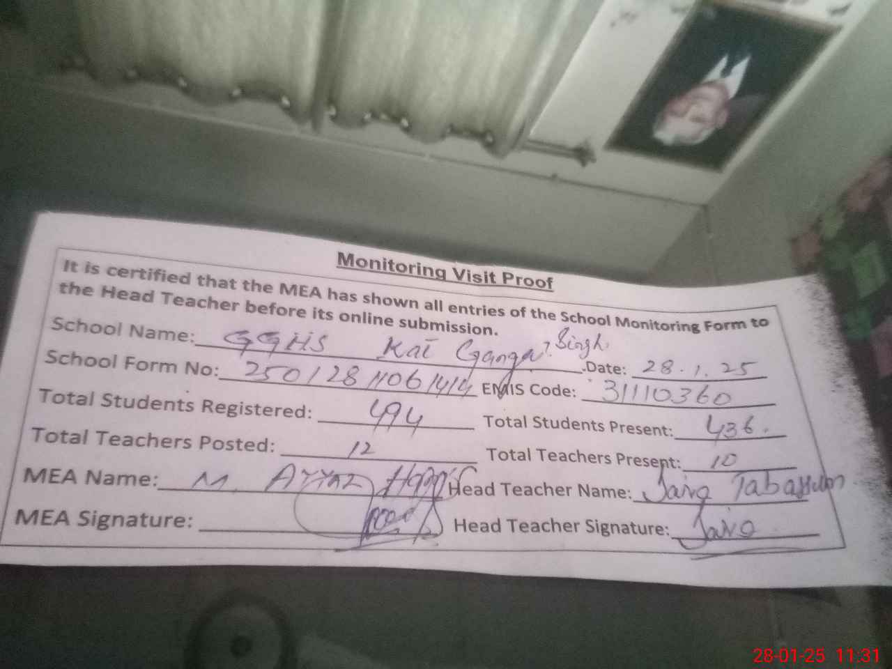 | EMIS Code: 31110360 | Name of School: GGHS KAT GANGA SINGH | |||