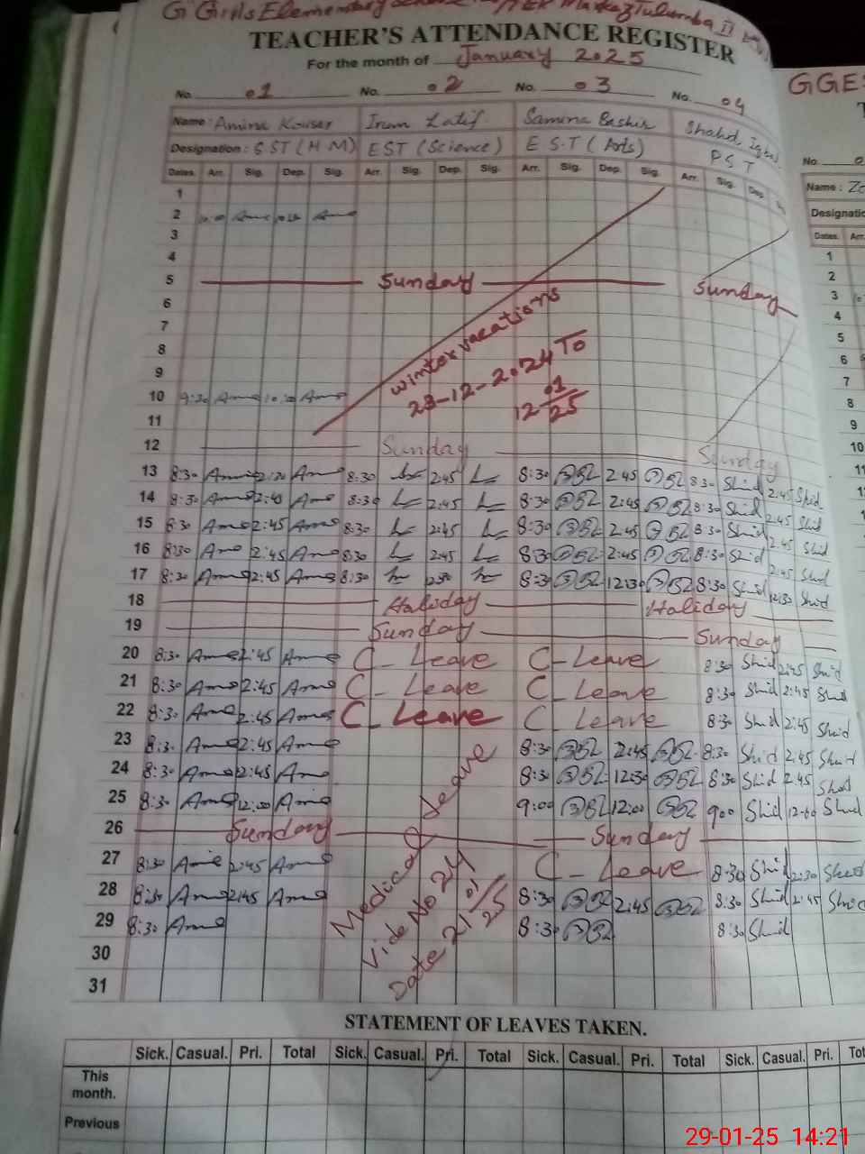 | 31**** | Ir**** La**** | Regular | 0 | 0 | 0 | 0 | 0 | 0 | 0 | 0 | 0 | Absent (Un-Authorized) | |