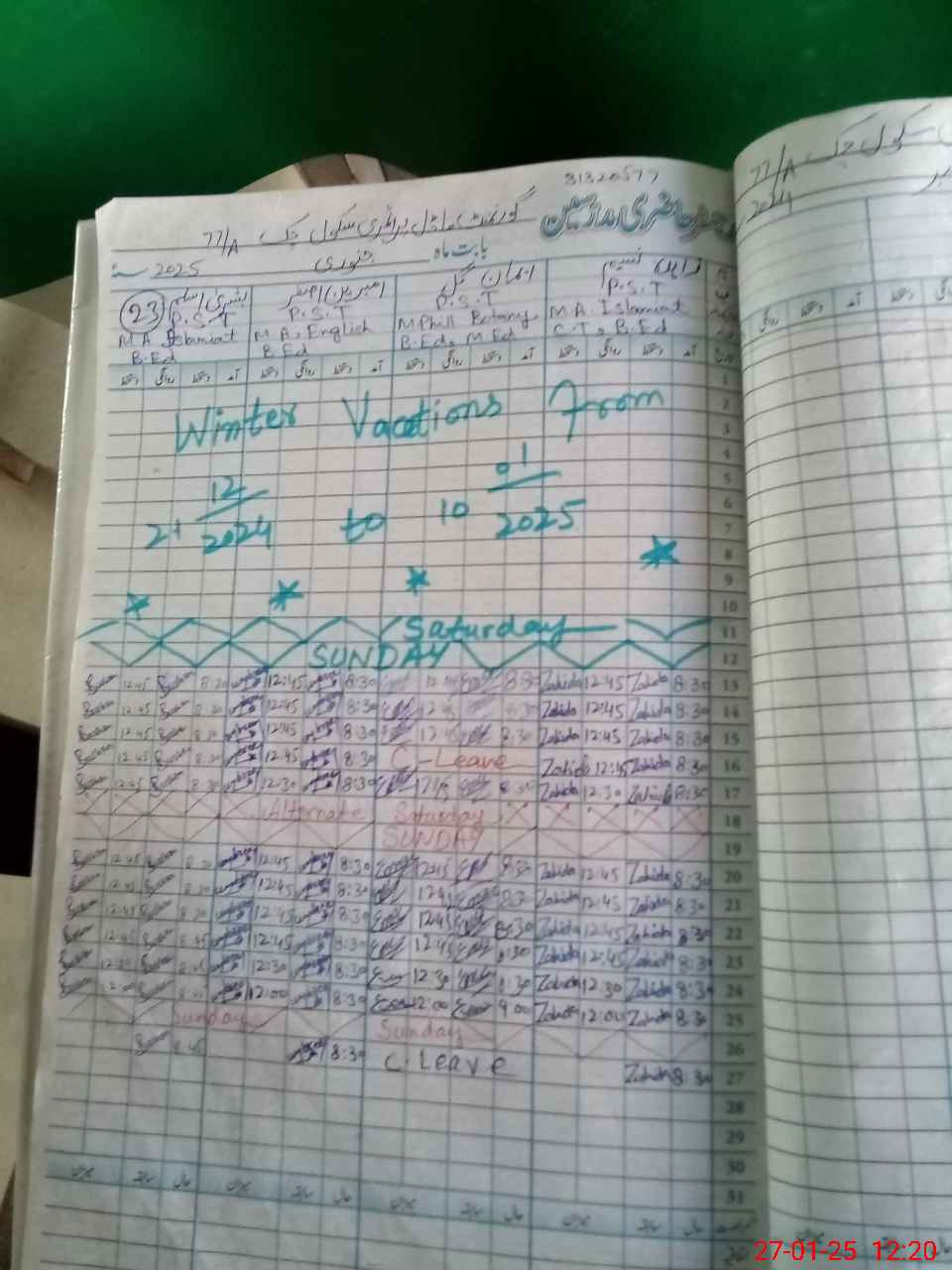 | Name: Um**** As**** Designation: (School Headmaster's/Headmistress's) PST Phone/Cell Number: 03**** |