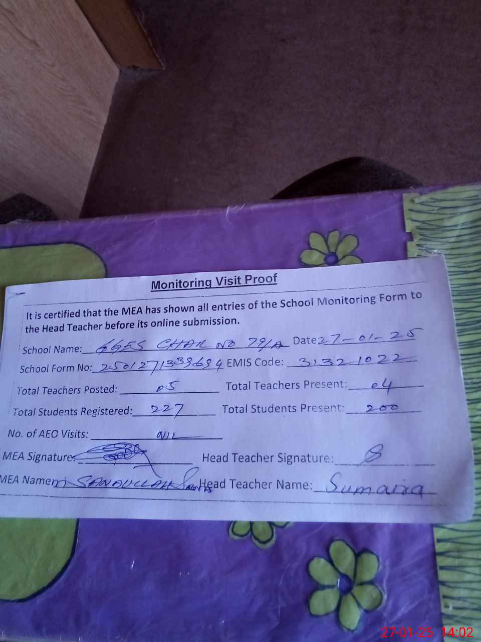 | EMIS Code: 31321022 | Name of School: GGES CHAK NO. 79/A | |||