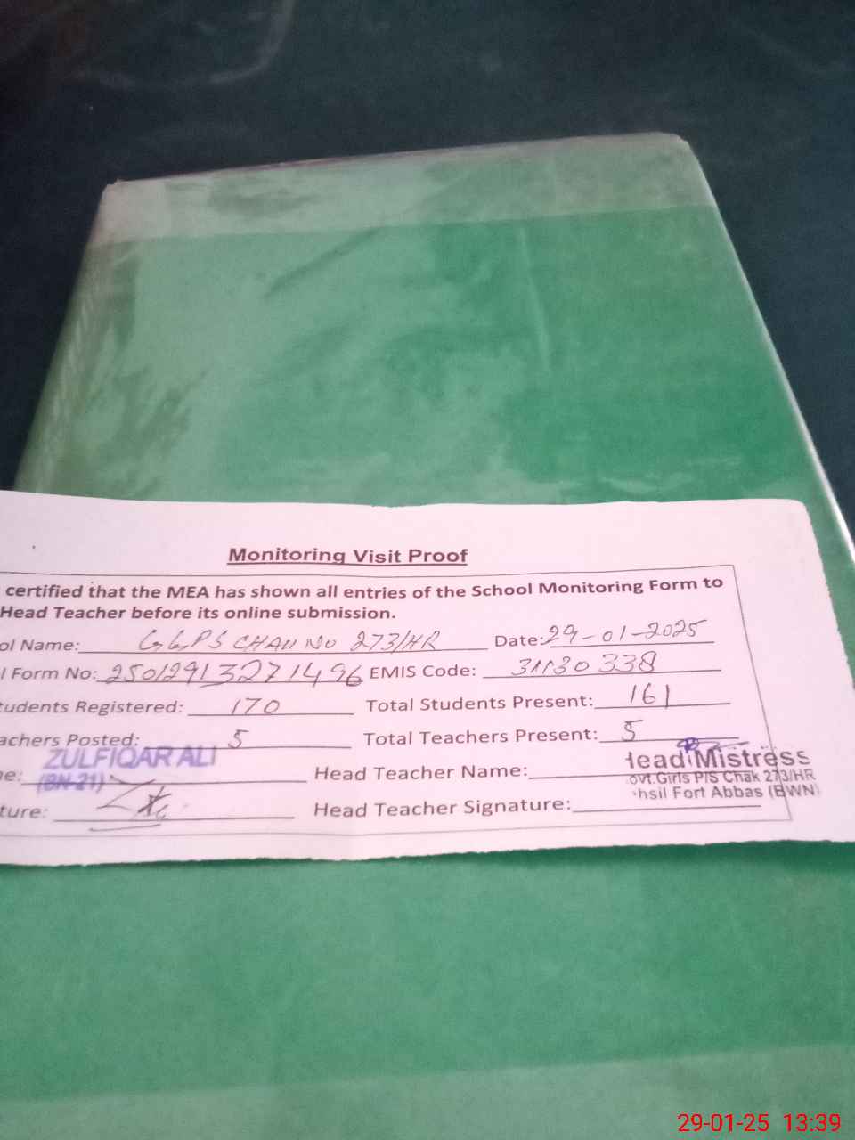 | EMIS Code: 31130338 | Name of School: GGPS CHAK NO 273 HR | |||