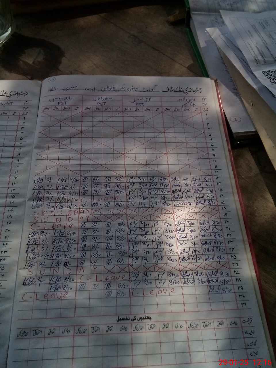 | CNIC | Full Name | Designation | R/C | Absence During Last Calender Month |