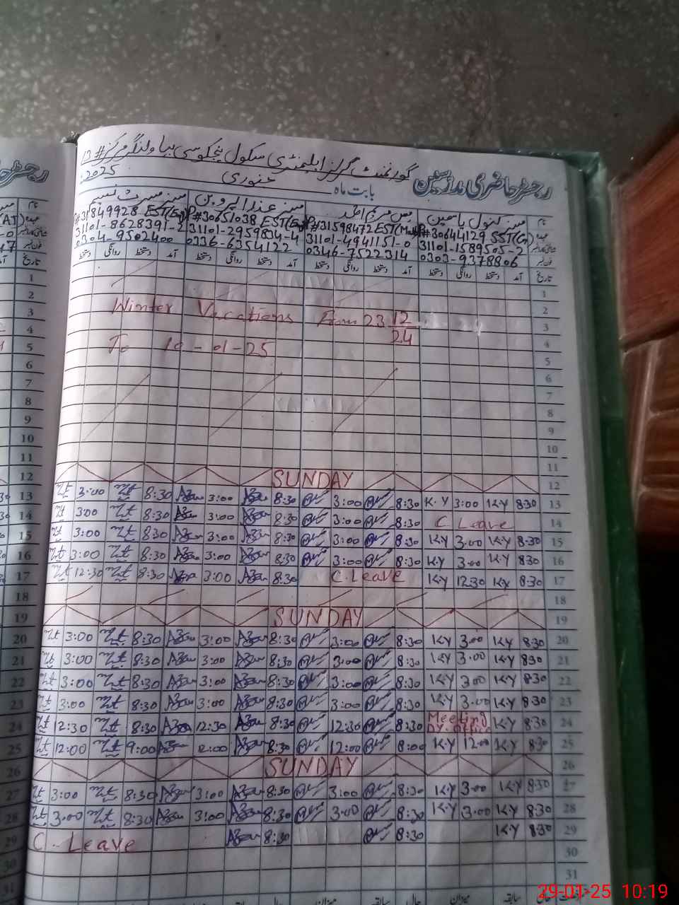| CNIC | Full Name | Designation | R/C | Absence During Last Calender Month |
