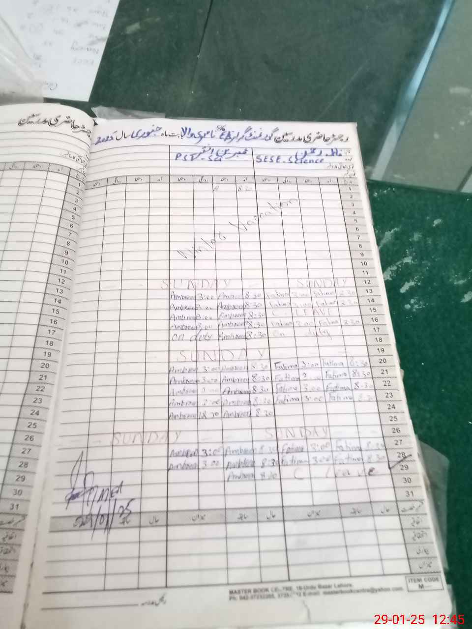 | CNIC | Full Name | Designation | R/C | Absence During Last Calender Month |