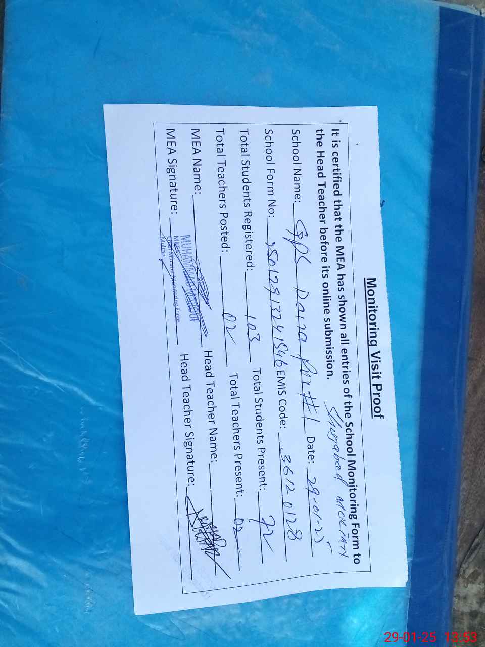 | EMIS Code: 36120128 | Name of School: GPS DAIRA PUR 1 P/O SIKANDARABAD SHUJABAD | |||