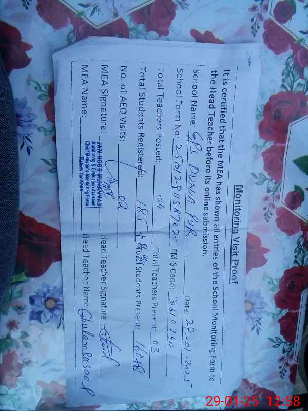 | EMIS Code: 31310240 | Name of School: GPS DUNIA PUR | |||