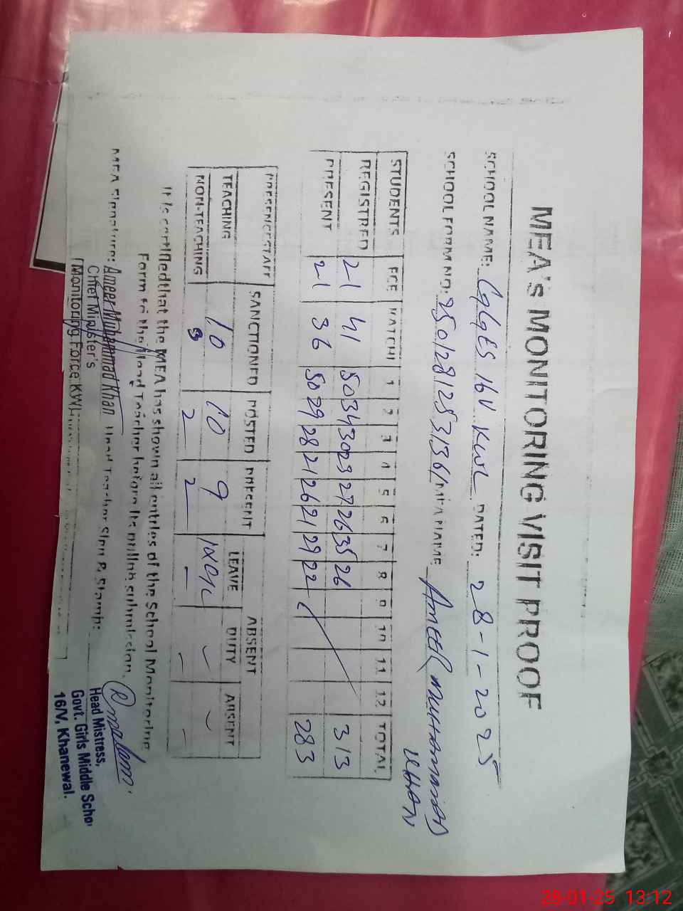 | EMIS Code: 36420394 | Name of School: GGES 16/V, KHANEWAL | |||