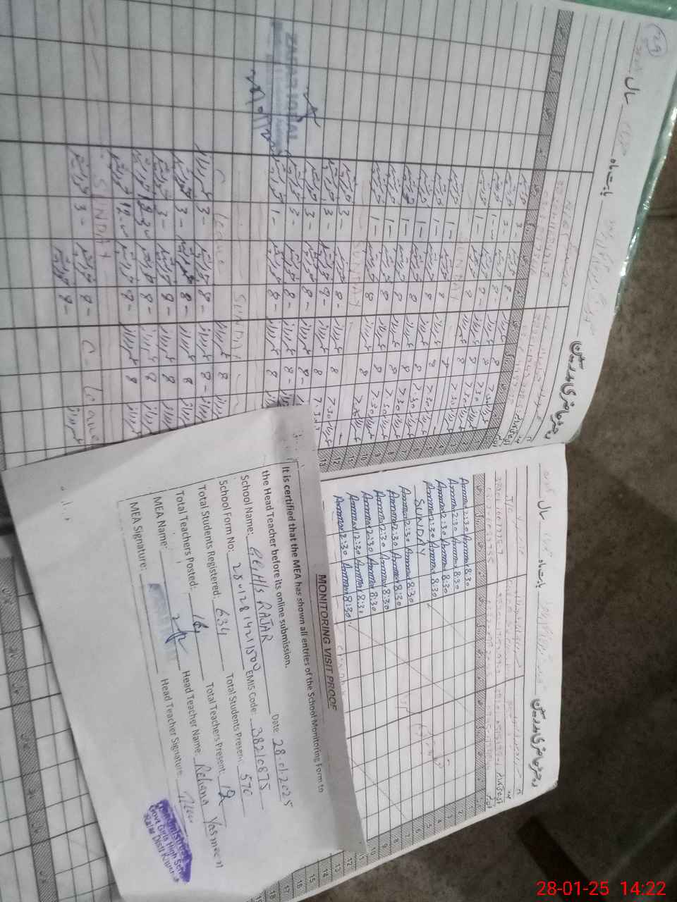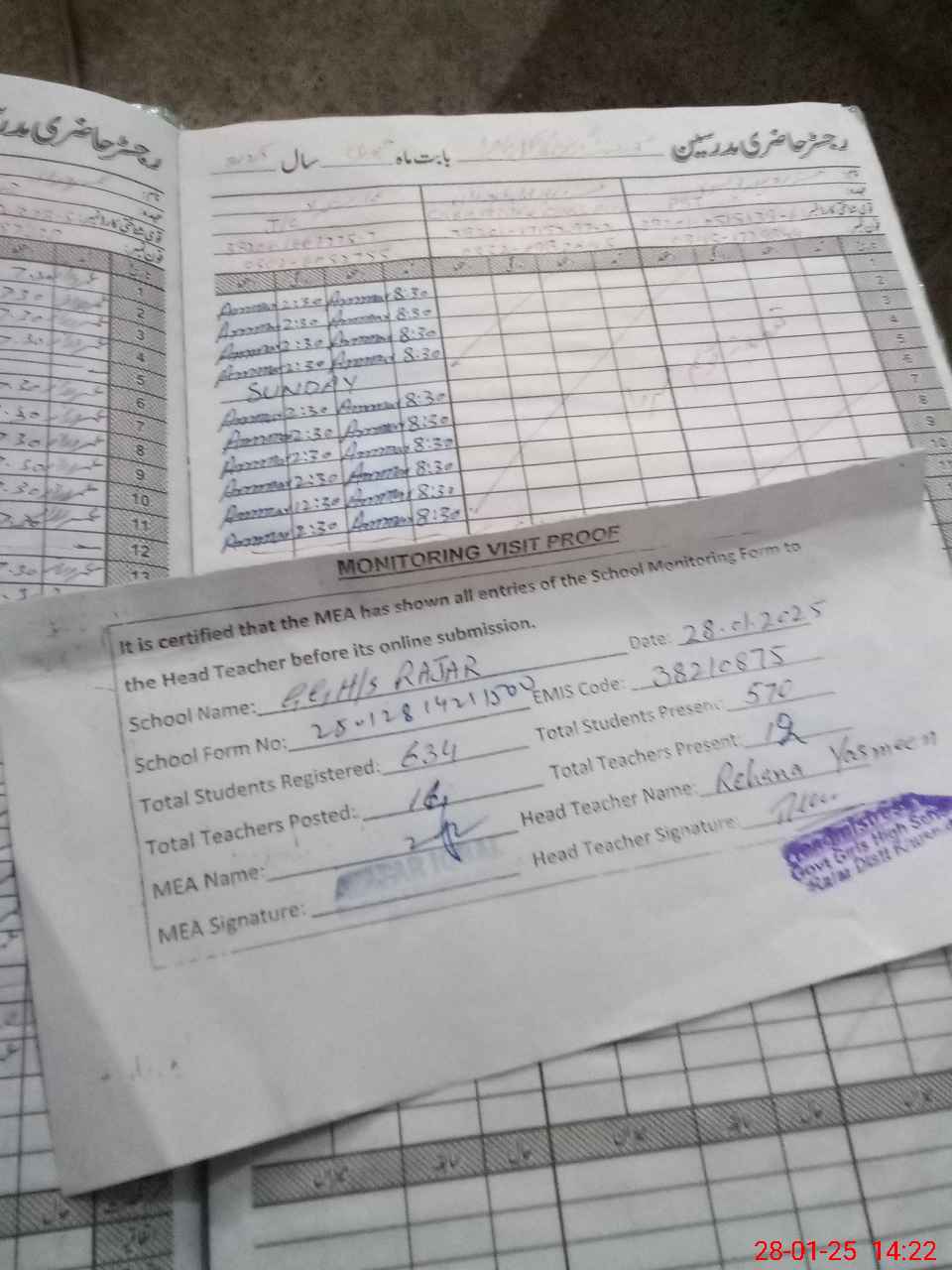 | Attendance Register | Head Teacher | MEA with School | Visit Proof |