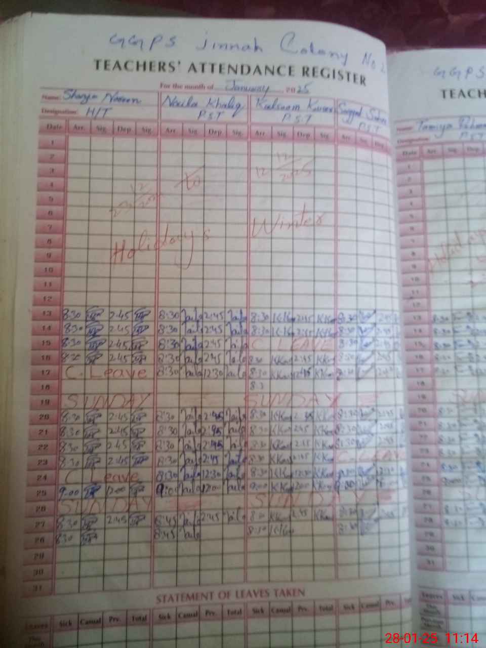 | Leave | Duty | Absent | Maternity | Medical | Ex- Pak |