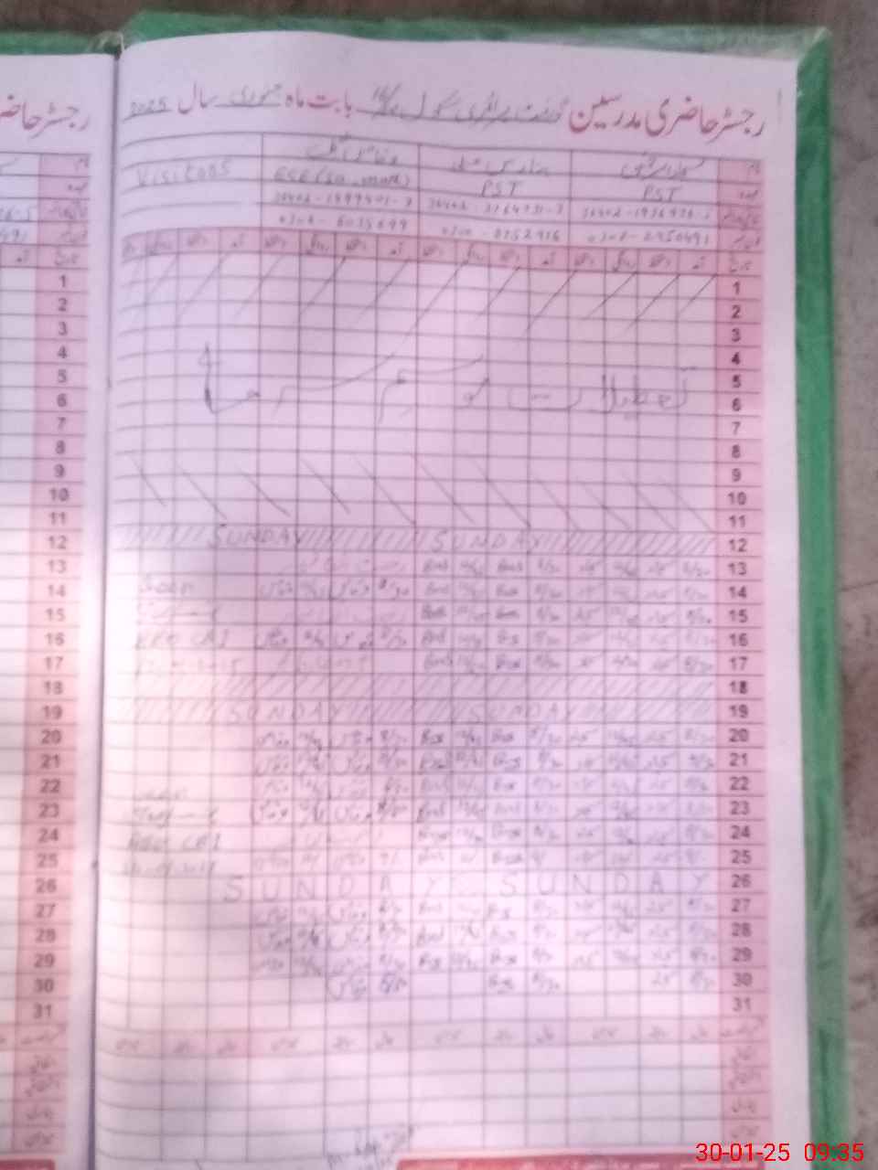 | Name: SA**** URRE**** Designation: (School Headmaster's/Headmistress's) PST Phone/Cell Number: 03**** |