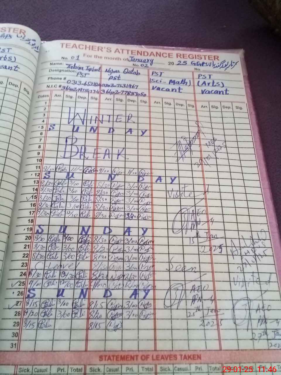 | Name: Ta**** Iq**** Designation: (School Headmaster's/Headmistress's) PST Phone/Cell Number: 03**** |