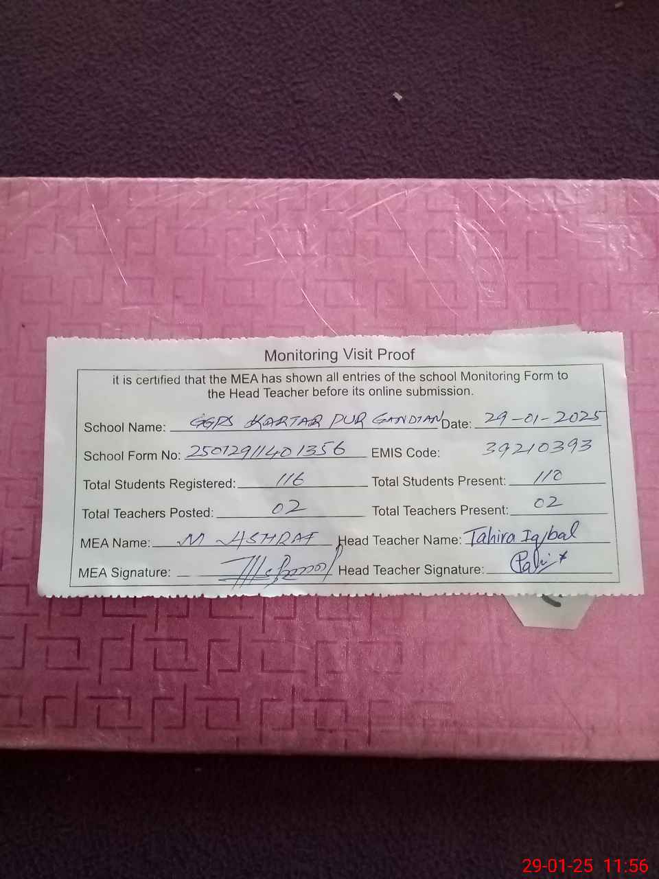 | EMIS Code: 39210393 | Name of School: GGPS KARTAR PUR GANDIAN | |||