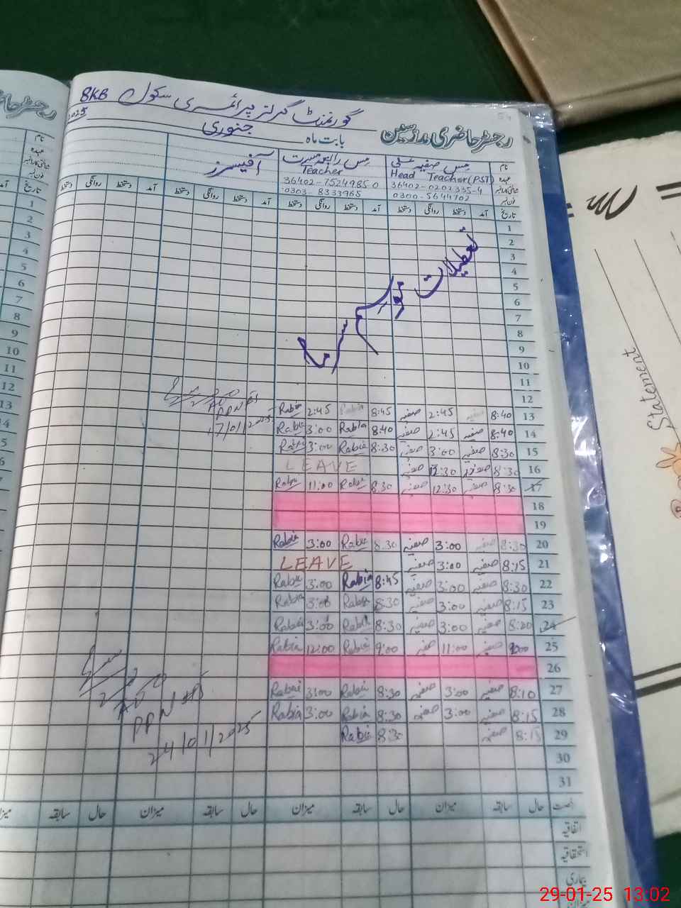| Name: SA**** AL**** Designation: (School Headmaster's/Headmistress's) PST Phone/Cell Number: 03**** |