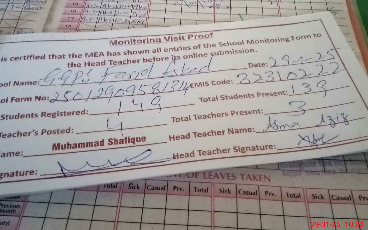 | Name: Fa**** Ya**** Designation: (School Headmaster's/Headmistress's) PST Phone/Cell Number: 03**** |