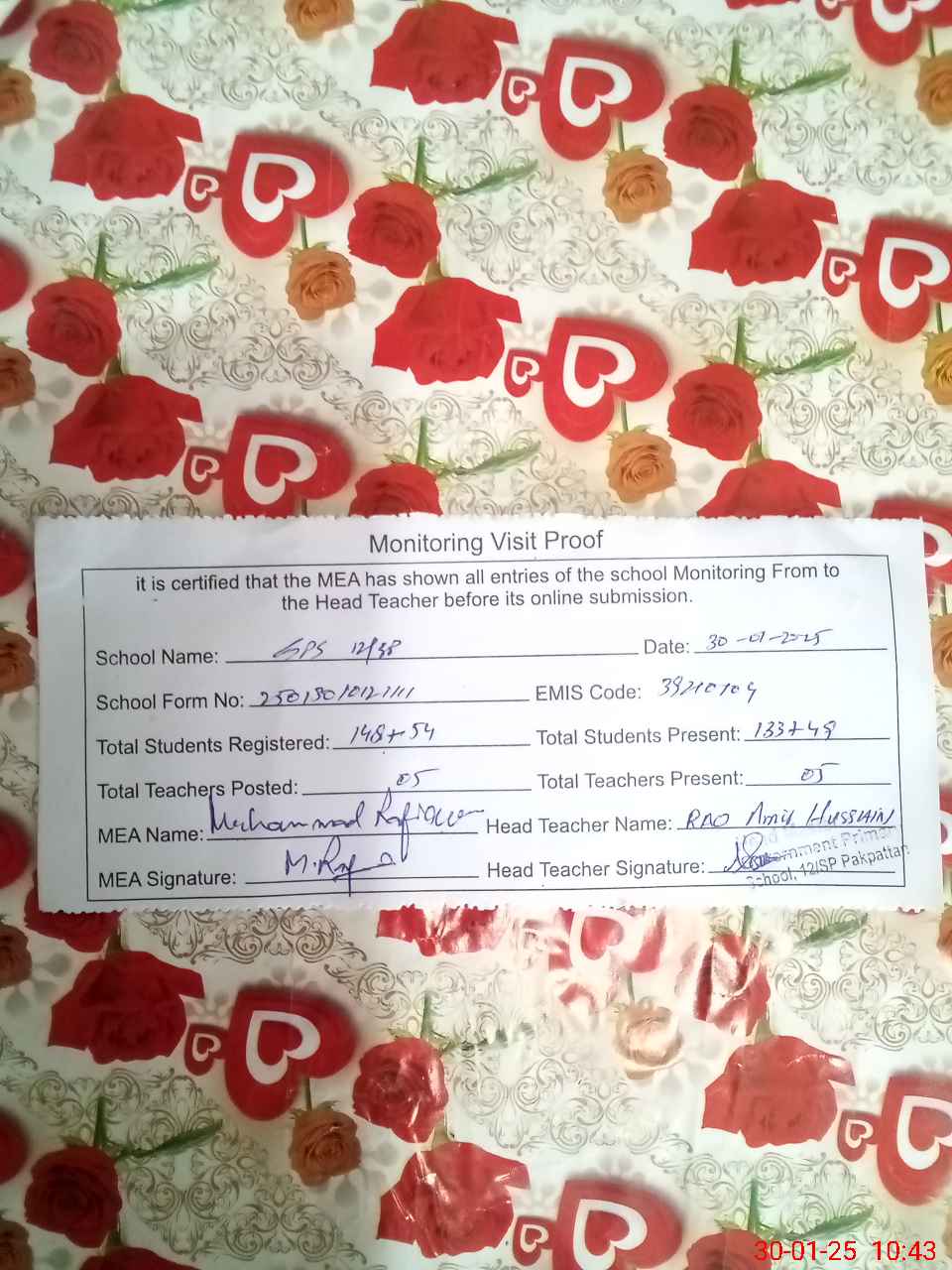 | EMIS Code: 39210104 | Name of School: GPS 12/SP P.O 8.S.P PAKPATTAN | |||