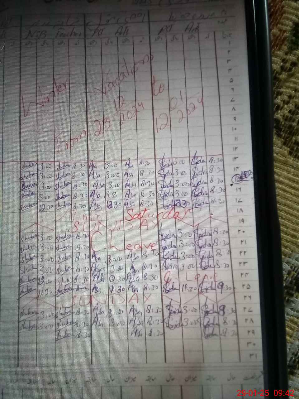 | Leave | Duty | Absent | Maternity | Medical | Ex- Pak |